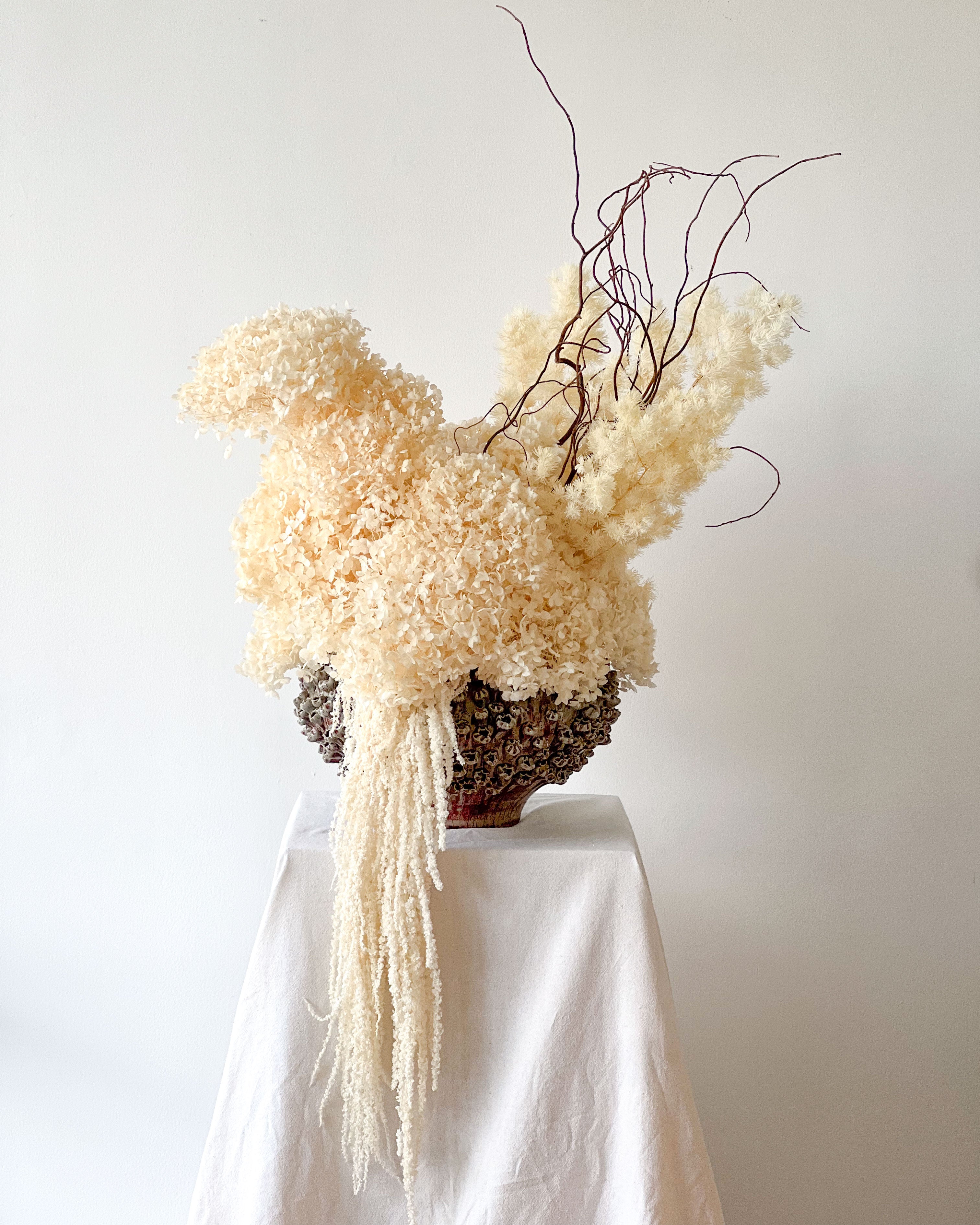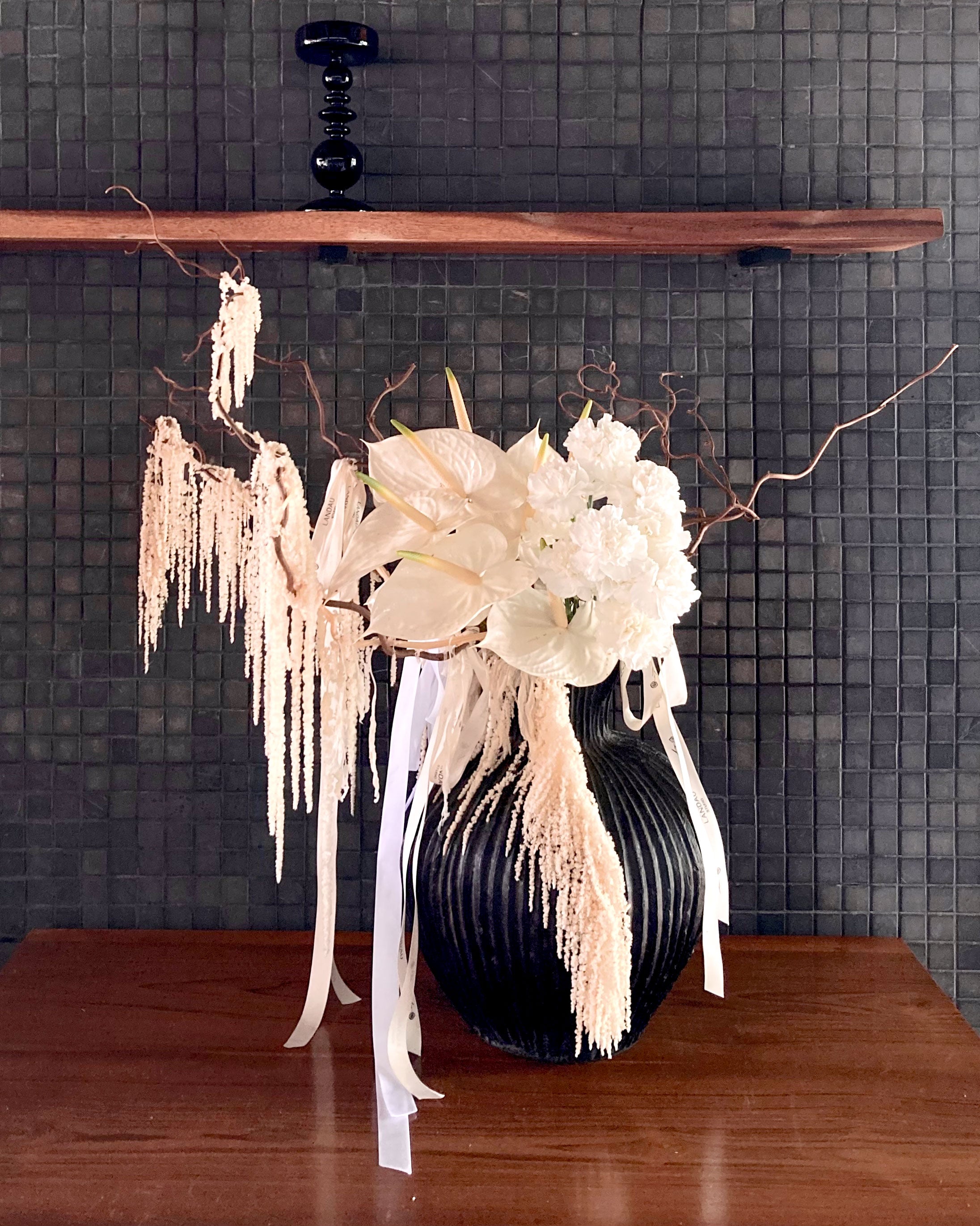 Our interior flower arrangements are perfect for any space, including restaurants, hotels, boutiques, villas, and offices. We offer both fresh and dried flower arrangements that can last up to 6 months. You can choose weekly or monthly delivery for fresh flowers. To ensure we have enough time to source the perfect flowers, please place your order one week before the desired delivery date.