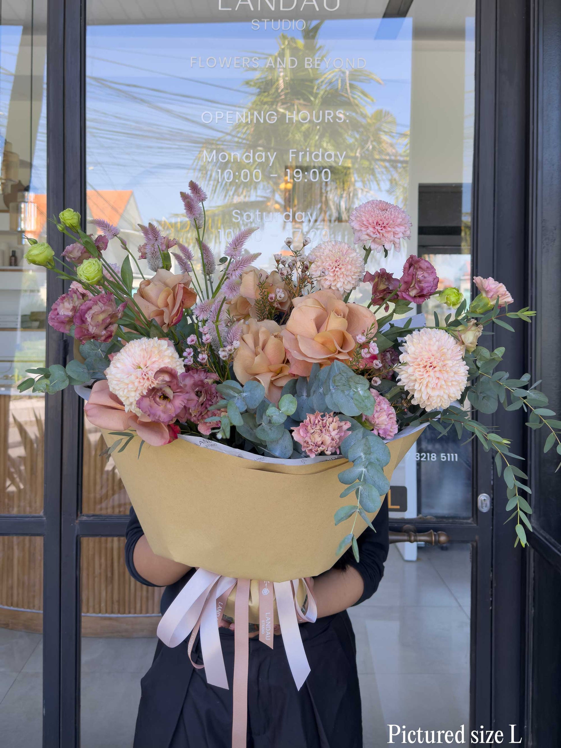 Our classic bouquets are available for same-day delivery if ordered between 10 AM and 6 PM Bali time/ GMT+8. To make sure your flowers stay fresh during the delivery, each bouquet is delivered in an aqua bag with a flower food sachet and care instructions, all by air-conditioned car.