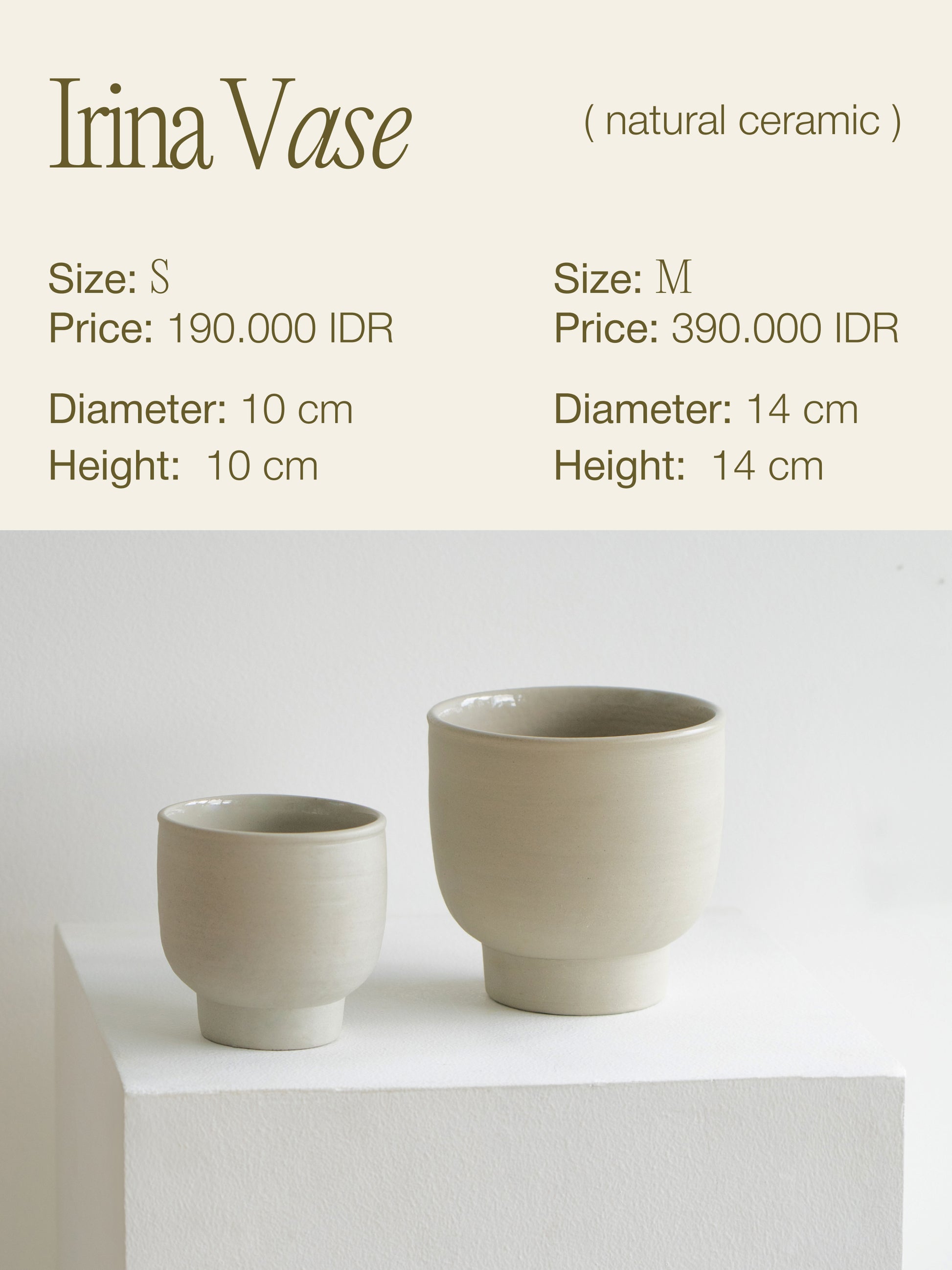 Our Irina Vase is a smooth, natural ceramic vase in a rounded form with a matte finish. It is available in two sizes (S and M), it’s perfect for small floral arrangement or 1 orchid. This vase blends beautifully into any interior in Bali.