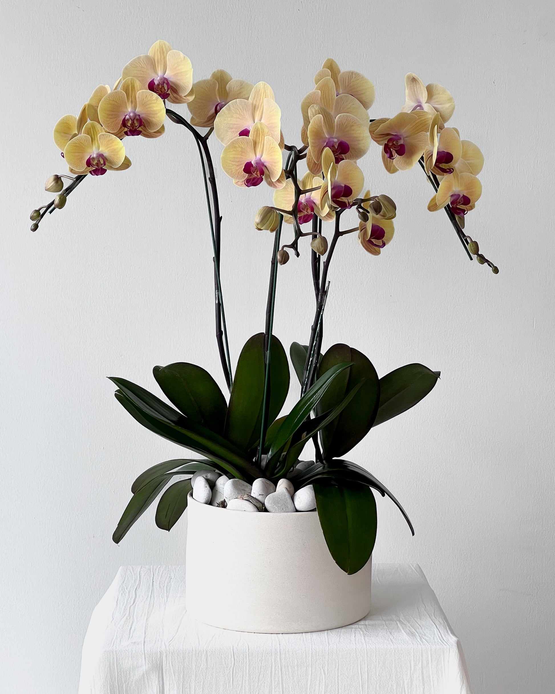 The selection of orchid is subject to availability and may differ slightly from the image shown. However, the overall color will remain faithful to the pictured orchid.